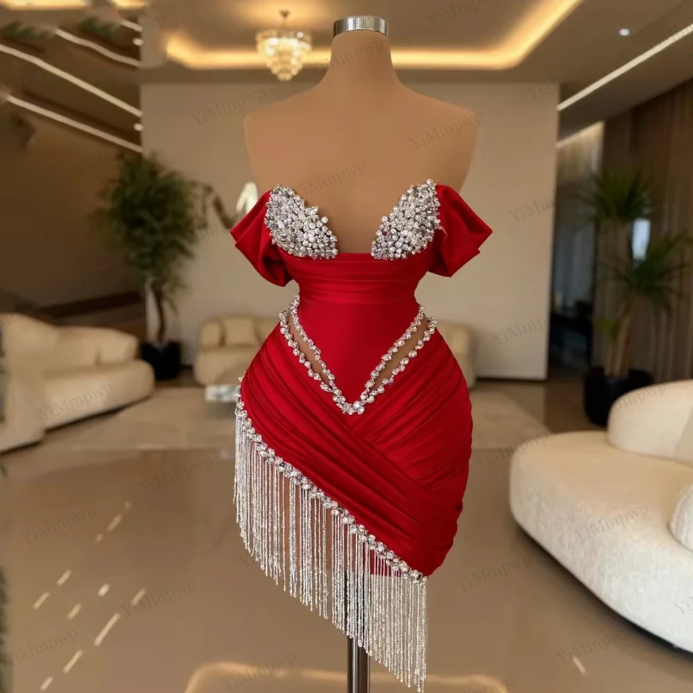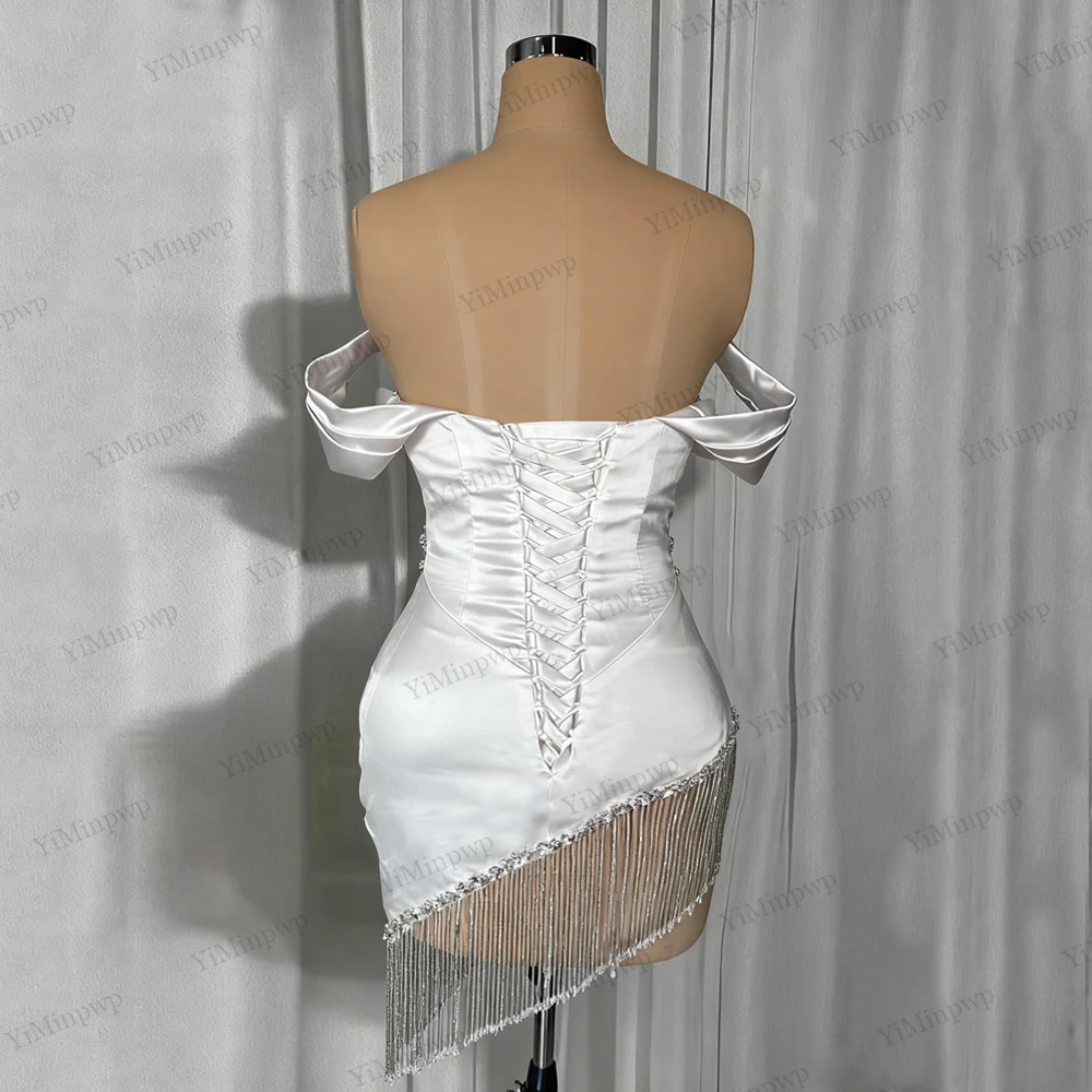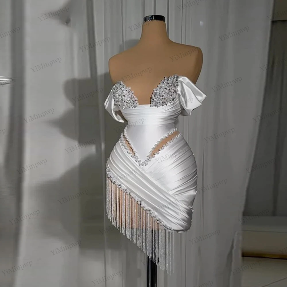 Crystal Ivory Cocktail Gown Pleat Straight Mini Homecoming Prom Dress Birthday Dress Satin Luxury 2025 Blackgirl Customized